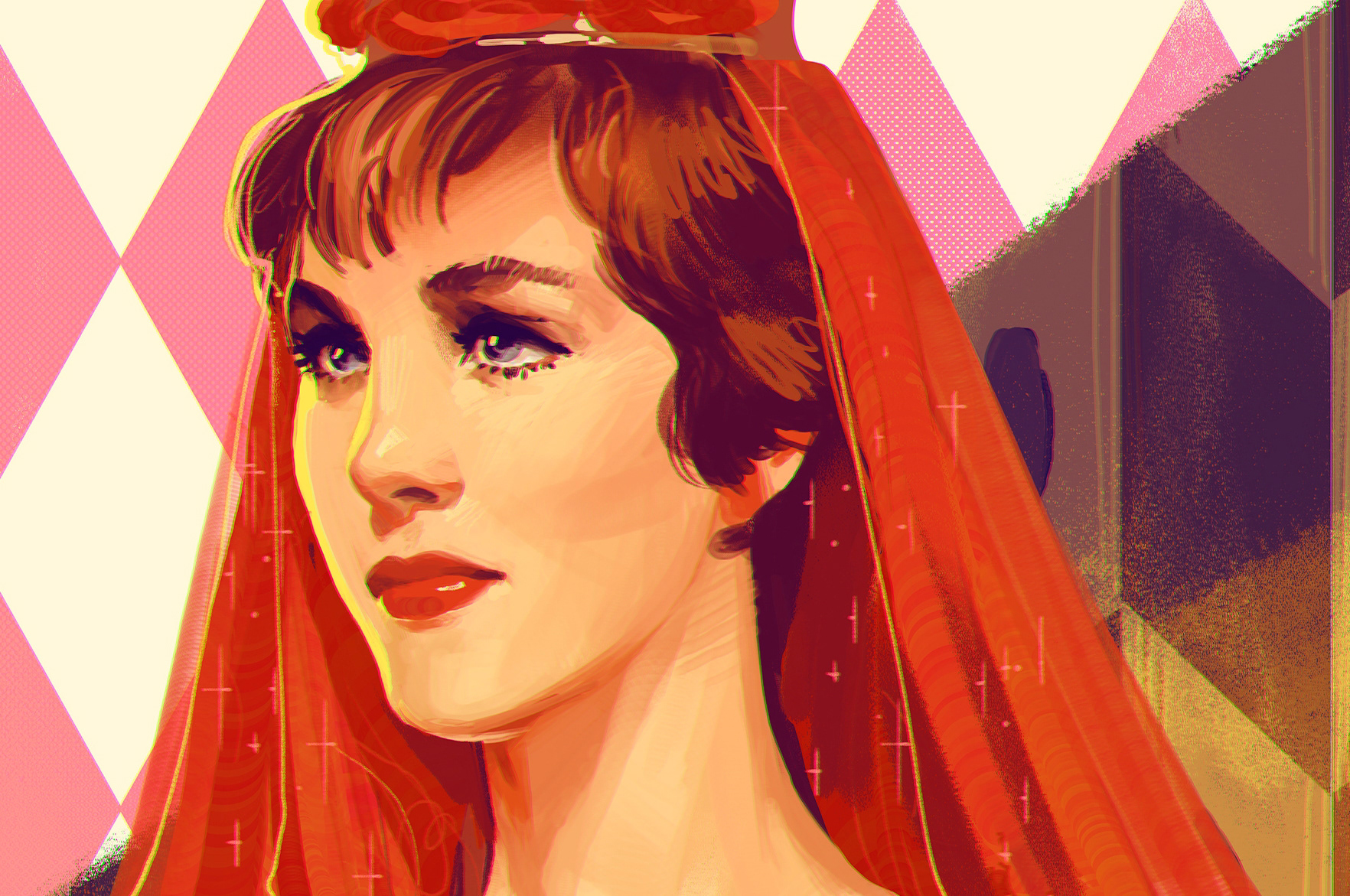 Portrait of Julie Andrews in her role role as Guenevere in Lerner and Loewe's 1960 musical "Camelot"