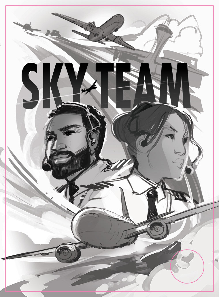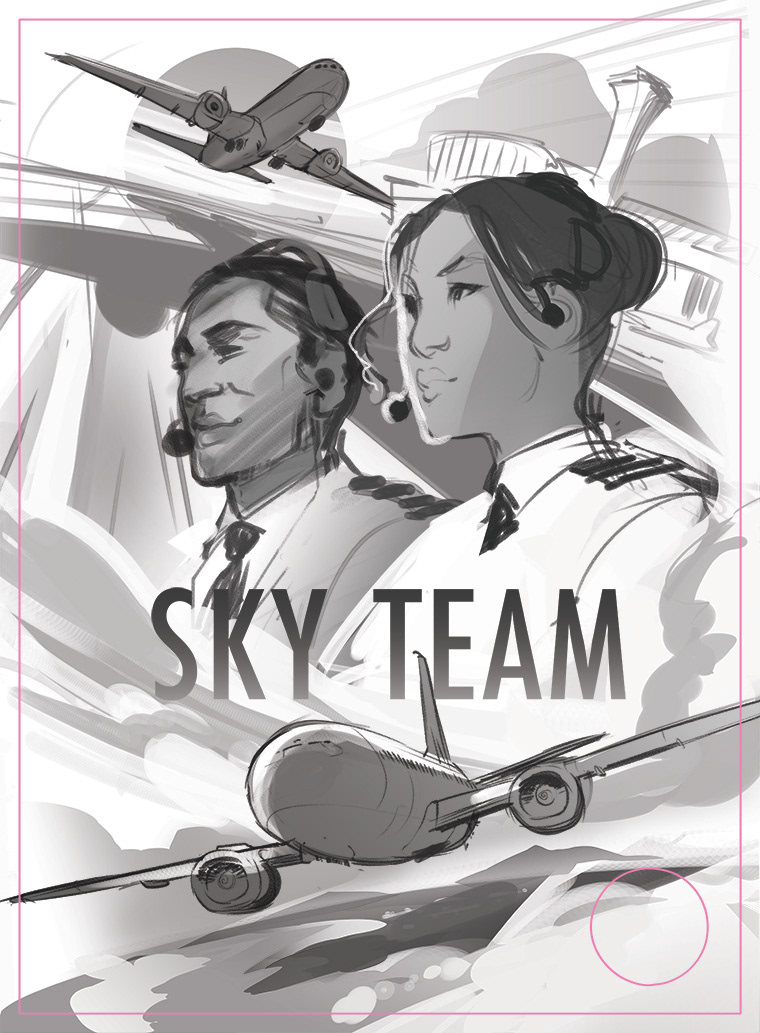 The Scorpion Masque team gave me a fun prompt and lots of freedom to explore movie poster style compositions that could blend the drama, action and teamwork of their game Sky Team: Prepare for Landing.