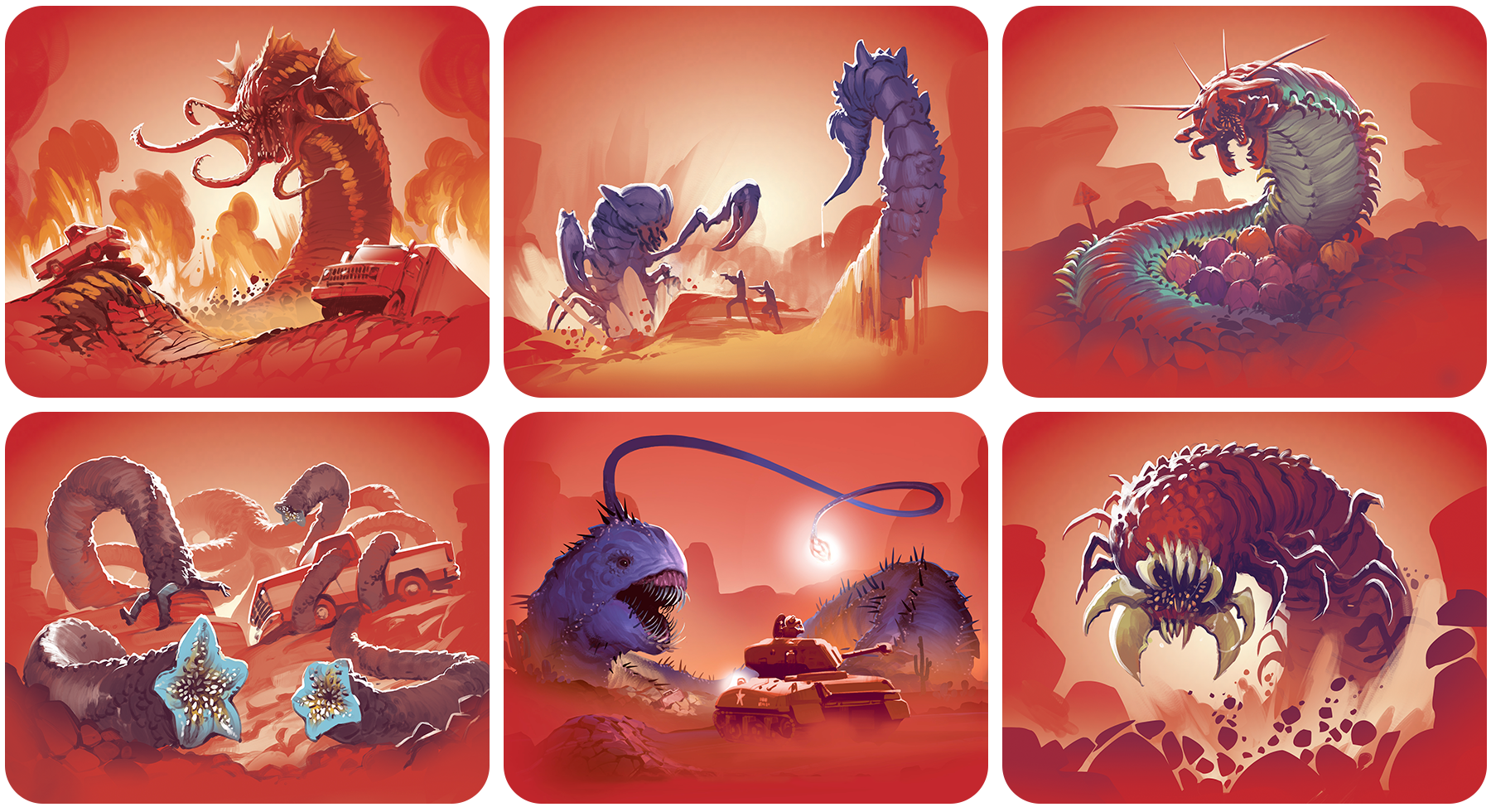 Cover, card and board illustrations for 'Terror Below' published by Renegade Game Studios.